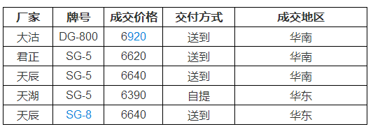 據(jù)找塑料網(wǎng)成交數(shù)據(jù)顯示(見表1),今日上午國內(nèi)PVC市場價(jià)格在期貨及運(yùn)費(fèi)大漲的預(yù)期下繼續(xù)瘋狂拉漲,場內(nèi)交投氣氛活躍,部分封盤不報(bào),在需求并未有大的好轉(zhuǎn)之下,目前市場貿(mào)易商存在大量囤貨現(xiàn)象。今日華東電石法SG-5主流價(jià)格維持在6450-6550元/噸(自提);華南市場普通5型電石料主流成交價(jià)6500-6600元/噸(自提)。