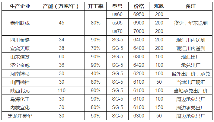 今日部分PVC出廠價(jià)格跟漲,5型普通電石料內(nèi)蒙地區(qū)周邊主流承兌出廠5900-5950元/噸,山東地區(qū)主流承兌出廠6100-6200元/噸,華東地區(qū)乙烯法企業(yè)主流送到價(jià)格6700-6800元/噸。
