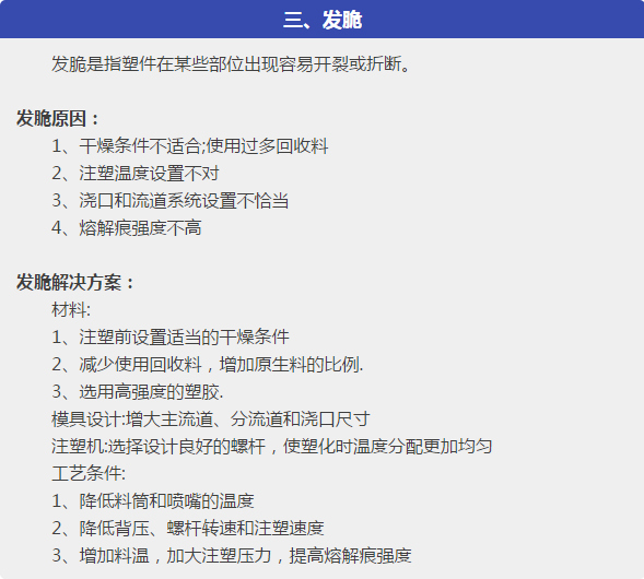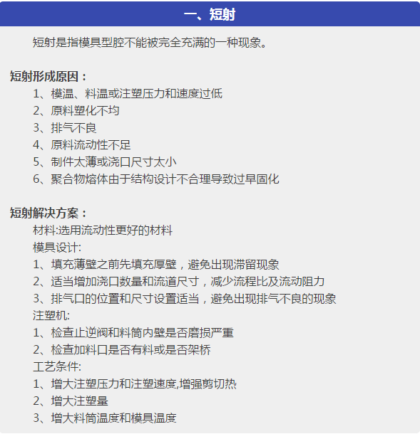 在注塑成型加式過程中,可能由于原材料處理不好、塑件或模具設(shè)計不合理、操作工沒有掌握合適的工藝操作條件,或者因機械方面的原因,常常使塑件產(chǎn)品短射、凹痕、飛邊、困氣、開裂、翹曲變形等成型缺陷。