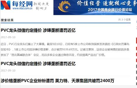 文章標題:多家PVC企業(yè)在微信群商量漲價被發(fā)現(xiàn) 遭罰款將近1億