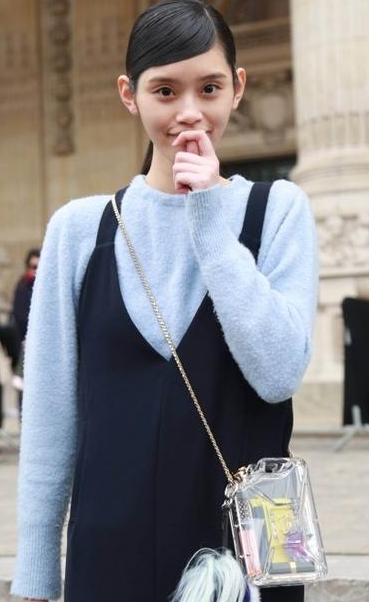 超模奚夢瑤身穿天藍色套頭毛衣,外搭黑色背心裙,肩背Chanel鏈條透視包,腳踩水冰月圖案平底鞋。早年出席活動的奚夢瑤有著小女生的可愛模樣,不過時尚感滿滿的她早就搭配起了透明PVC包包,彰顯潮流感。