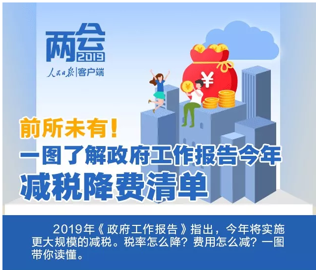 十三屆全國人大二次會議5日上午9時在人民大會堂開幕,李克強(qiáng)總理在《政府工作報告》中,多次提到“稅”字,我們摘錄了2019年政府工作任務(wù)中的主要涉稅內(nèi)容: