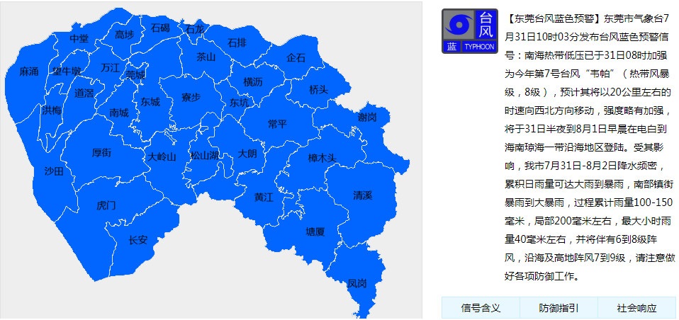 東莞首次發(fā)布臺(tái)風(fēng)藍(lán)色預(yù)警