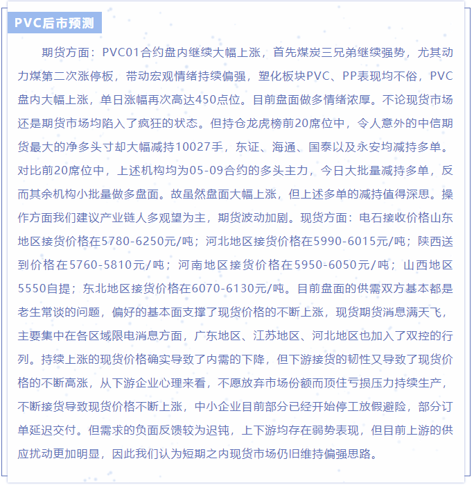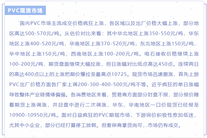 文章標(biāo)題:PVC:山雨欲來(lái)風(fēng)滿(mǎn)樓,期貨瘋狂突破前高,現(xiàn)貨單日漲幅高達(dá)500元/噸